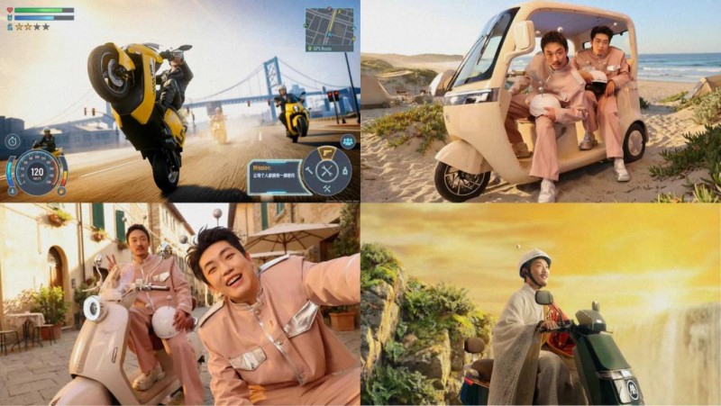 此次春节微电影中,爱玛将多款产品自然融入到剧情中,完成了与目标用户的“丝滑沟通”。"马上有钱"场景通过金碧辉煌的视觉设计,展现爱玛Q5与奢华场景的完美融合;"马上有对象"桥段则巧妙植入仰望A5车型,凸显贵族气质。还有“马上有猫”场景,张兴朝骑着爱玛墩墩,堪称外星人气“座驾”,以其萌系设计,直接化身为“角色化道具”,成为外星从推介的“地球旅游理想载具”。画面还有针对商用市场的爱玛马赫S1Max,以及三轮市场的爱玛乐臻CA900。这种将产品特性与剧情自然结合的创意手法,有效提升了品牌信息的传播效果。