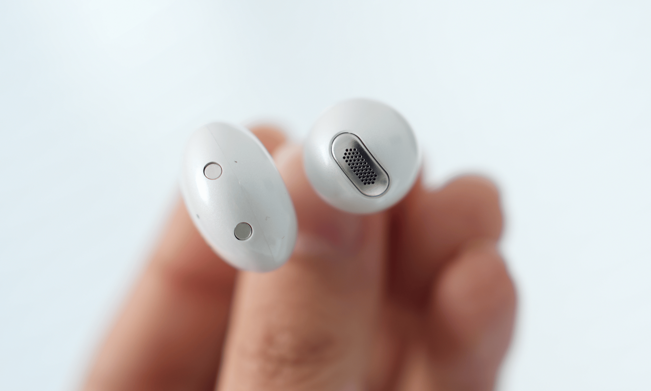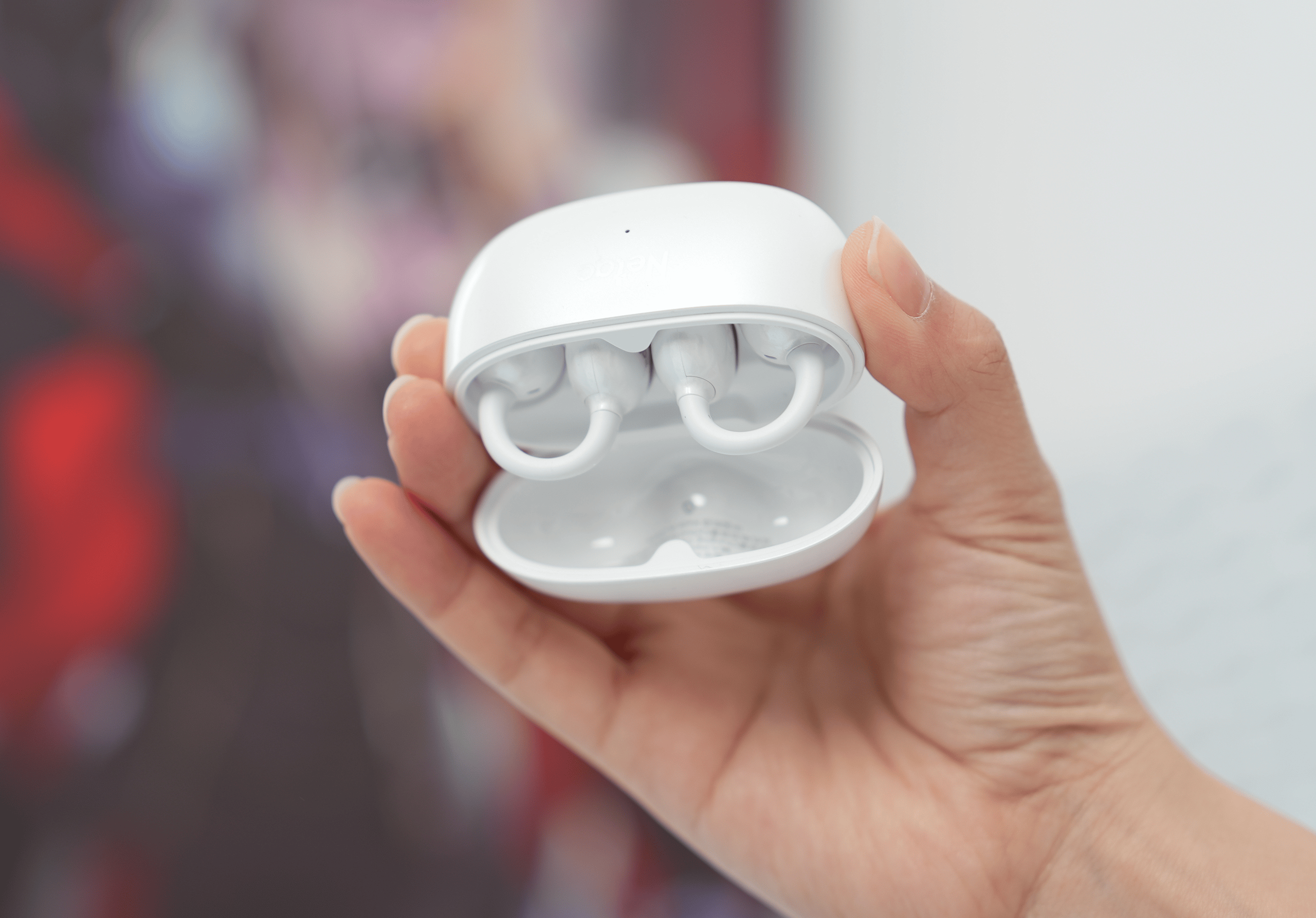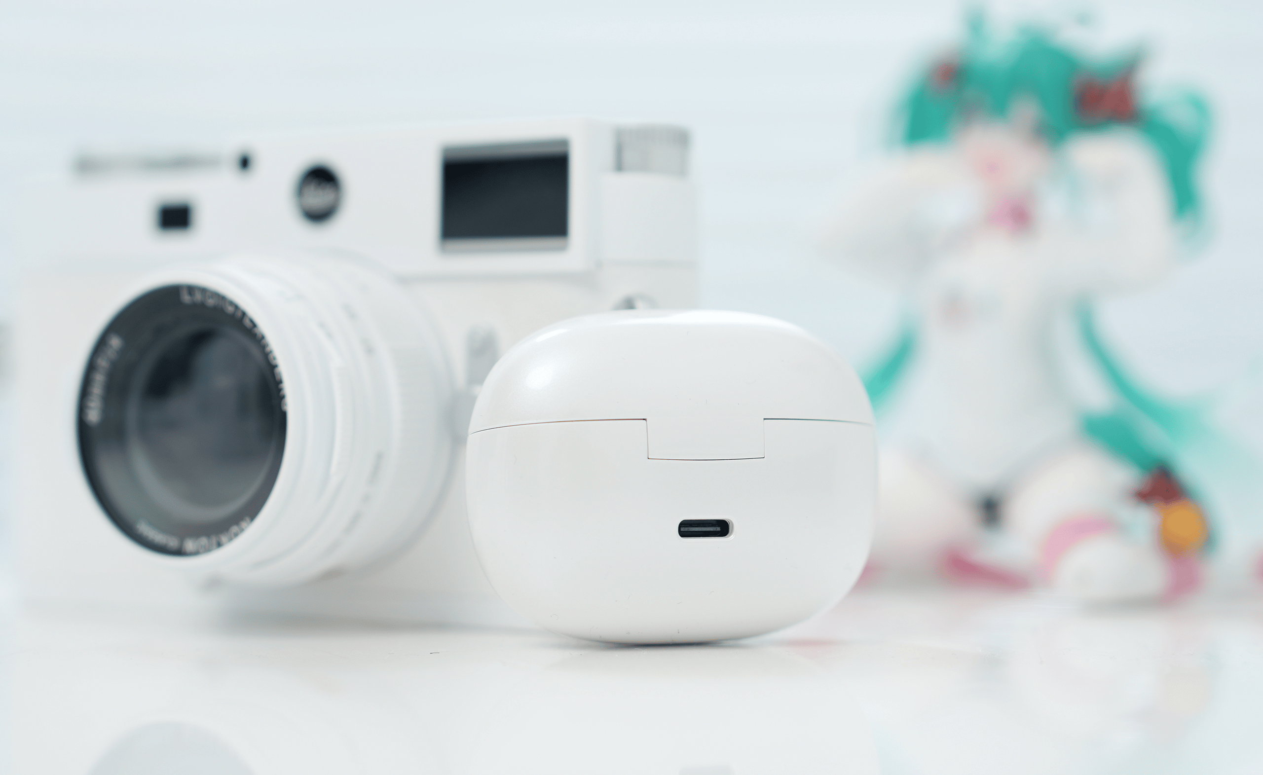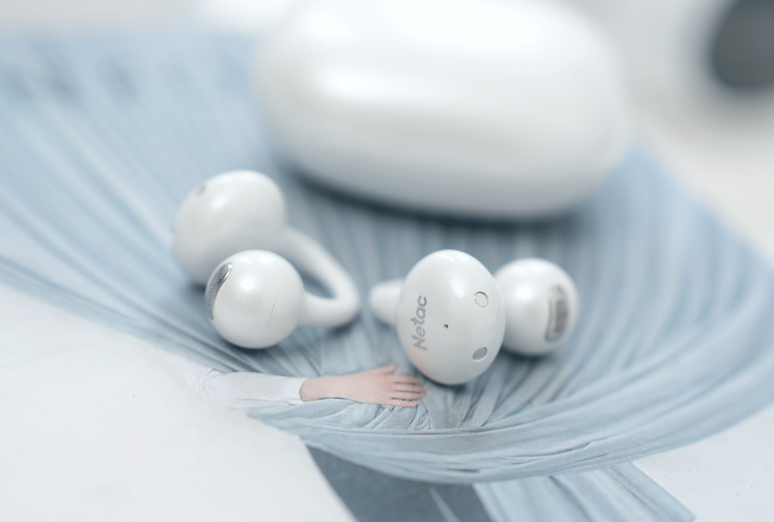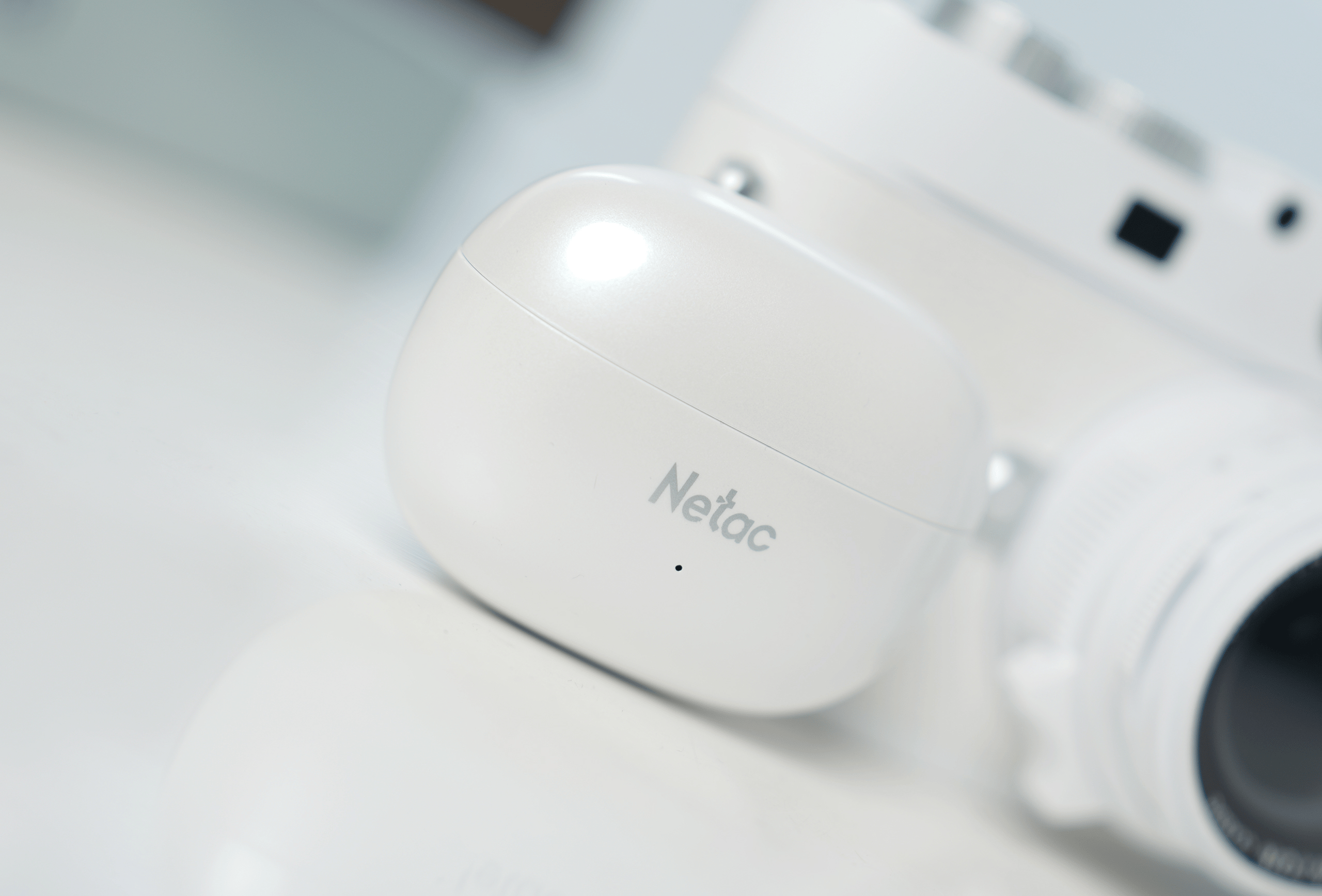 打开包装,第一眼看到的就是充电仓。典型的鹅卵石圆润造型,没有锋利的边缘。表面采用了「珍珠白烤漆工艺」,在光线下会呈现出细腻的光泽,呈现独有的质感。