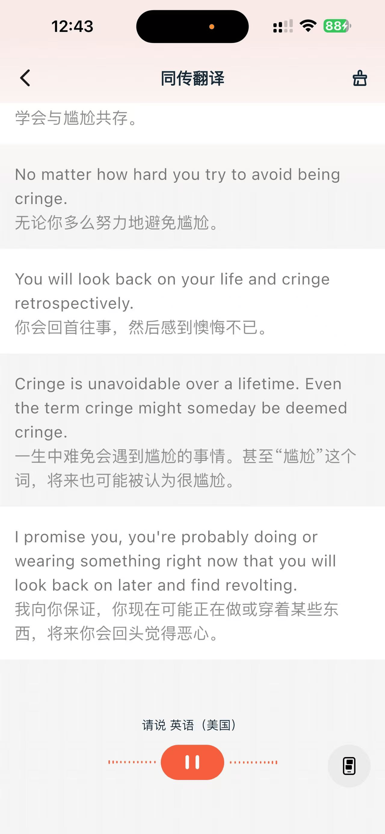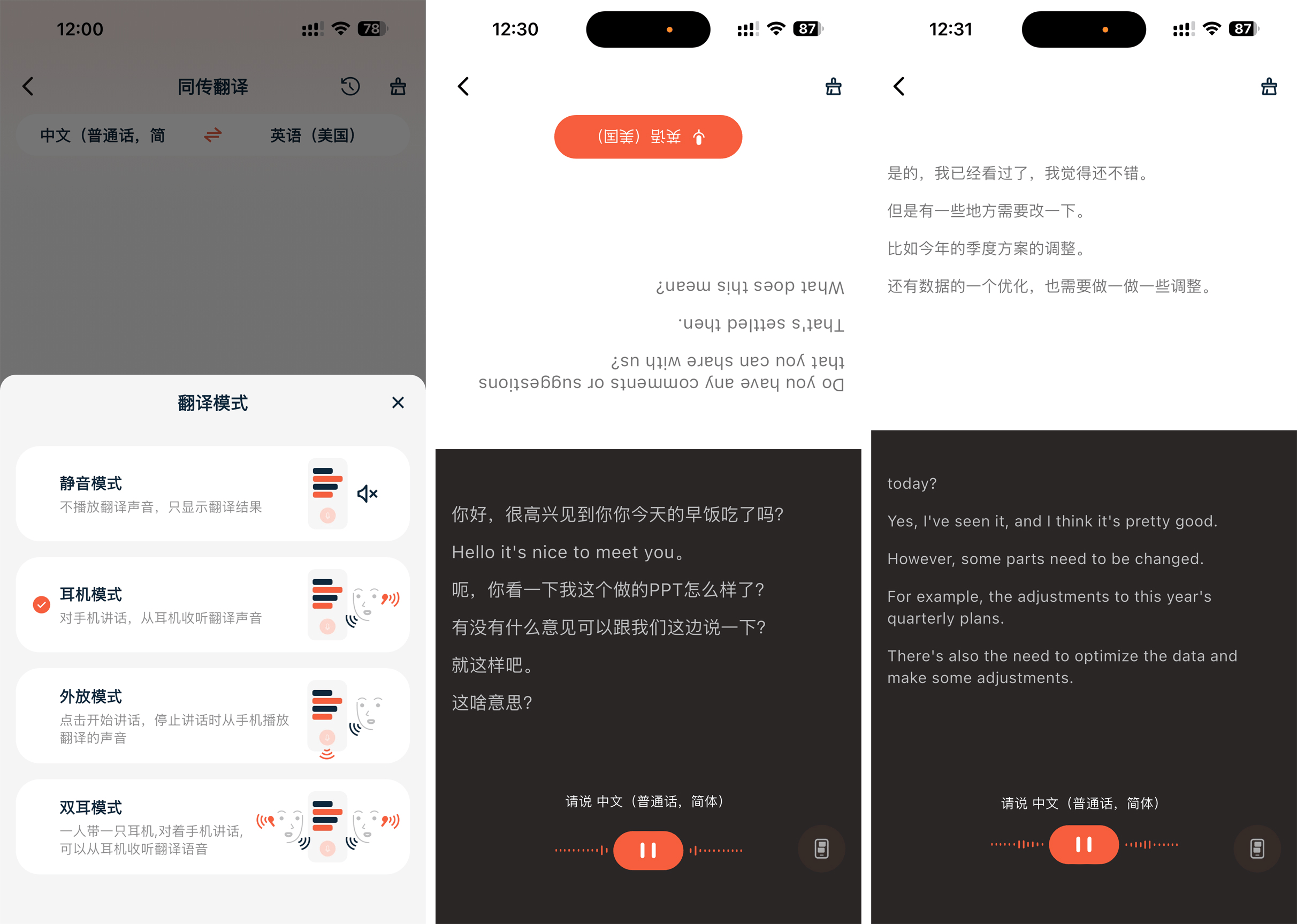 在实际使用中,我发现它的识别逻辑很实用。比如我在网上听一场英文演讲,开启耳机模式,将手机靠近音源,翻译内容可以直接通过耳机播报。如果你不想被打扰,也可以开启静音模式,在手机上对照查看翻译文本。