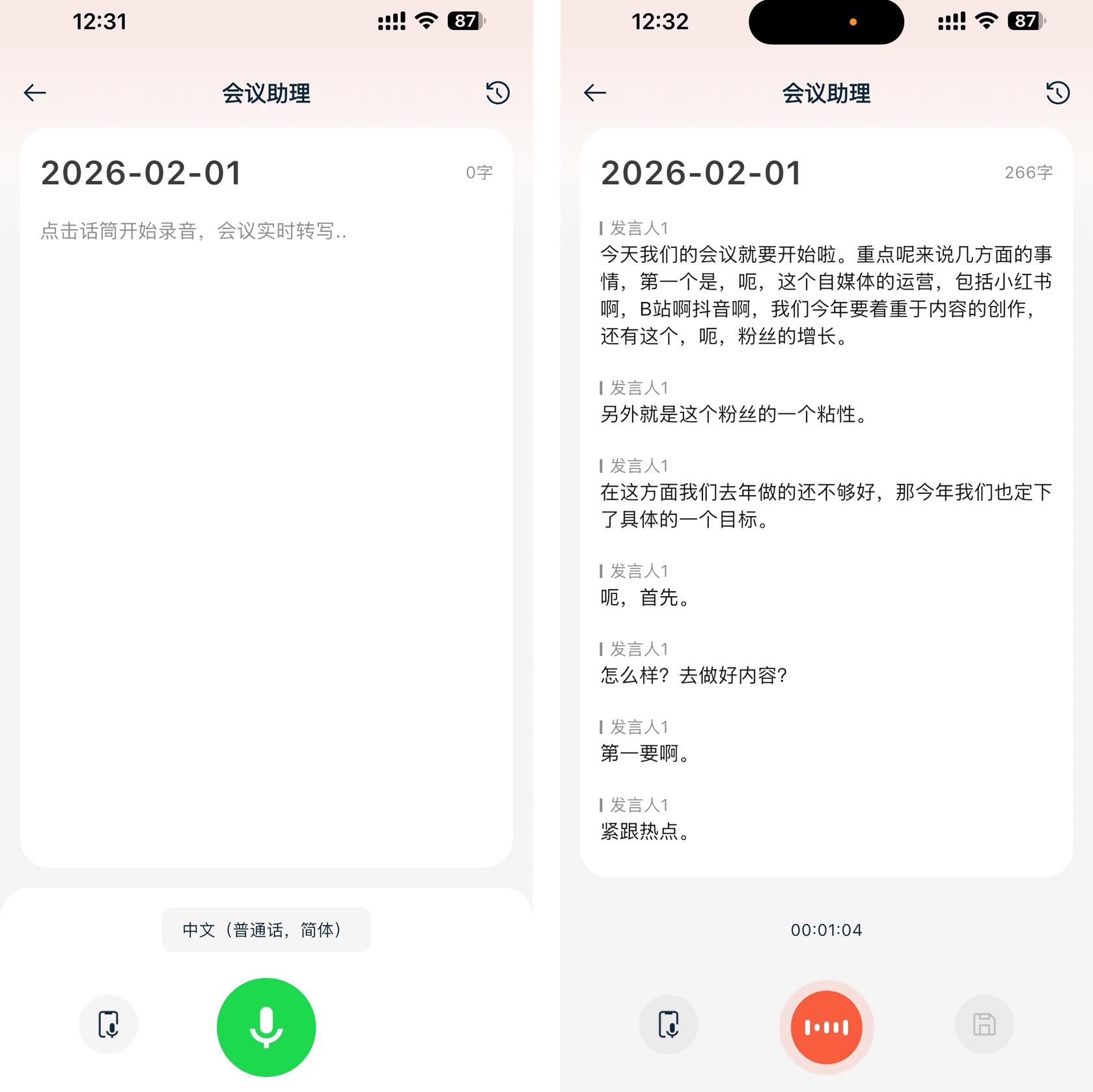(1) 录音 + 转写:会议、学习场景的效率工具