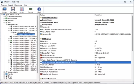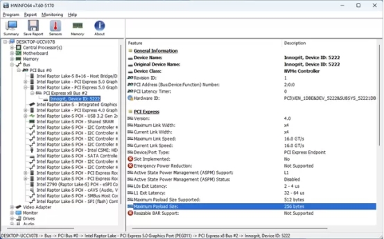 英韧IG5222主控支持512字节Maximum Payload Size (MPS),能够在AMD锐龙平台上发挥出更加极致的顺序读写带宽。在英特尔酷睿平台上,MPS被限制到256字节,顺序读写速度会略低一些,但通常整体存储性能表现好于AMD锐龙平台。所以我们的测试平台还是以英特尔为主。