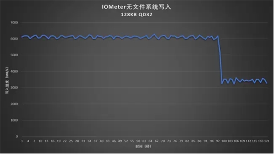这个测试在删除分区后通过IOMeter进行。英韧IG5222版梵想S790 2TB空盘条件下能够提供大约600GB的写入缓存空间,缓存外的TLC直写速度大约为3300MB/s左右,表现非常不错。