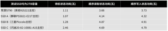 硬盘盒的外部带宽(20Gbps)限制了读写速度,所以这几块SSD都能大致跑在相同的工况下。那么通过测得的功耗信息来看,英韧IG5222的综合表现是*好的,无论是待机功耗还是顺序读写时的功耗,都有明显的优势。
