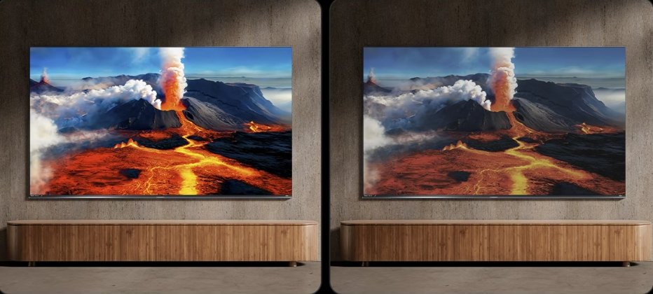 但RGB-MiniLed电视不一样。海信E8S拥有9360个背光分区(100英寸版本),配合那颗就像“大脑”一样的信芯®AI画质芯片H7,它能做到“光色同控”。简单说,画面是红的,背后的光就是红的;画面是绿的,光就是绿的。这就彻底消除了那种突兀的白光晕。这种技术上的压制,能让画面通透感提升好几个档次,暗场深邃,亮场璀璨。