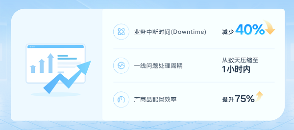 在引入一体化ITSM平台工具的场景化自动化流程与自助服务体系后,企业运维模式逐步实现重塑:业务中断时间(Downtime)减少40%,一线问题处理周期从数天压缩至1小时内,产商品配置效率提升75%。值得关注的是,这些显著成效并非源于一次性的工具替换,而是流程重构、数据驱动与持续优化机制形成闭环后的必然结果,为同类型企业提供了可复制的实践样本。
