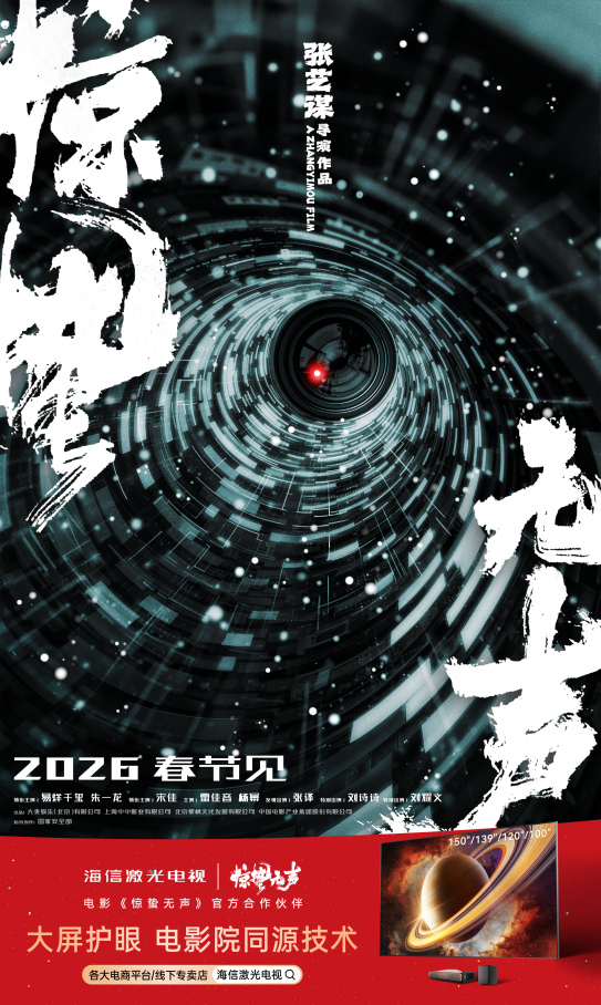 近日,海信激光电视正式官宣成为2026年春节档电影《惊蛰无声》官方合作伙伴。该片由国家安全部指导创作,张艺谋导演执导,集结了易烊千玺、朱一龙、宋佳等实力派演员,已定档于今年大年初一正式上映。作为激光电视行业的引领者,海信激光电视一直致力于通过产品和技术突破,打造健康护眼、真实沉浸的“家庭影院级”观影体验,这与中国电影行业追求极致匠心的精神不谋而合。当极致显示技术遇上中国电影美学,期待为观众带来一场新春观影盛宴。
