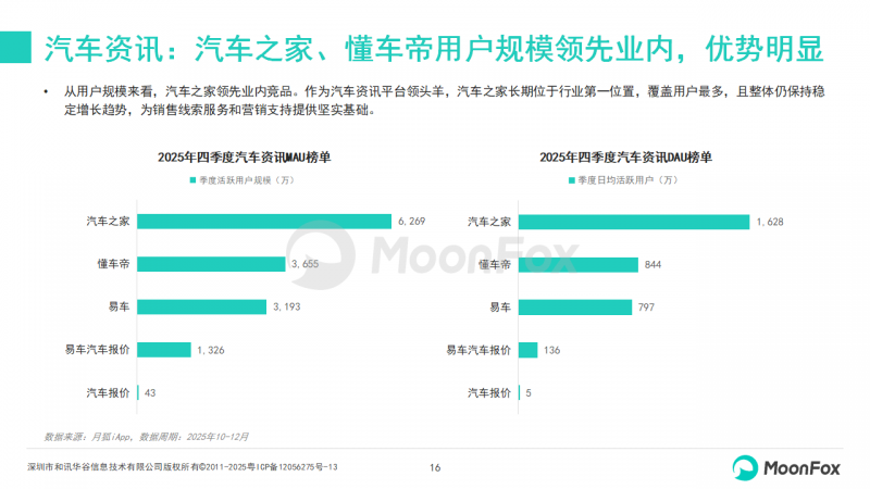 6、汽车资讯:汽车之家、懂车帝用户规模领先业内,优势明显