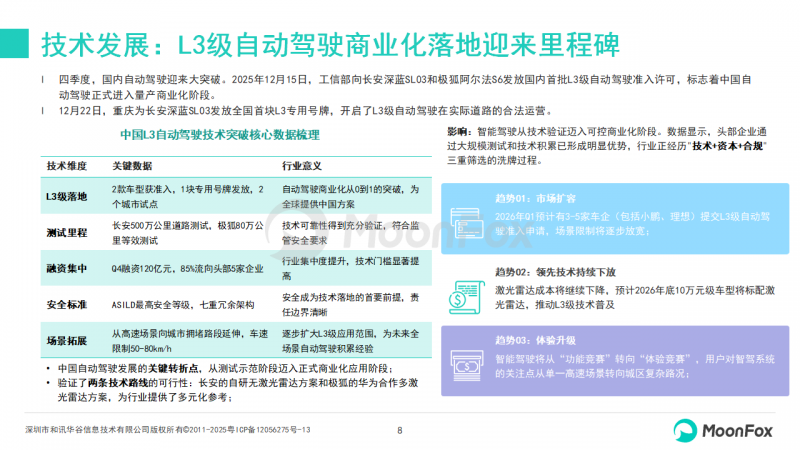 4、技术发展:L3级自动驾驶商业化落地迎来里程碑