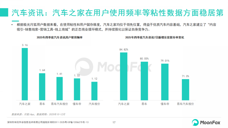 7、汽车资讯:汽车之家在用户使用频率等粘性数据方面稳居第一
