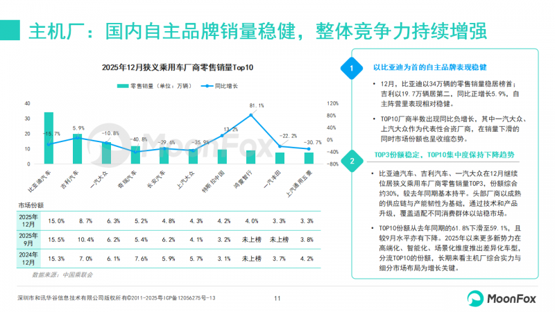 1、主机厂:国内自主品牌销量稳健,整体竞争力持续增强