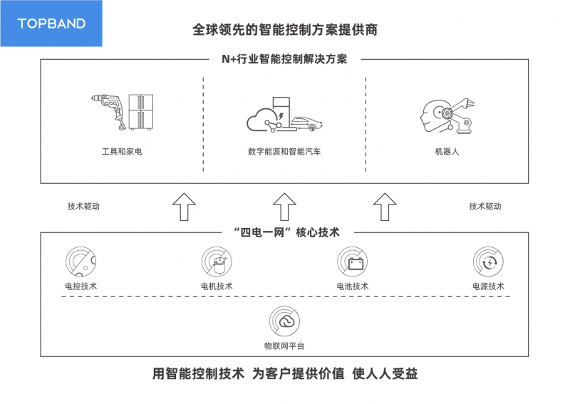 三十年来,拓邦始终紧跟全球科技浪潮的脉搏,与中国智控产业共同经历四次核心变革:当数字化与互联化应用爆发,拓邦加大研发投入,逐步构建“电控、电机、电池、电源及物联网”的“四电一网”技术矩阵,累计申请专利近4千,参与27项国家标准制定,以核心技术与创新方案为翼,实现从单一品类到工具、工控、数字能源、机器人等多领域的技术延伸,支撑公司从“部件生产”到“系统解决方案”的升级。