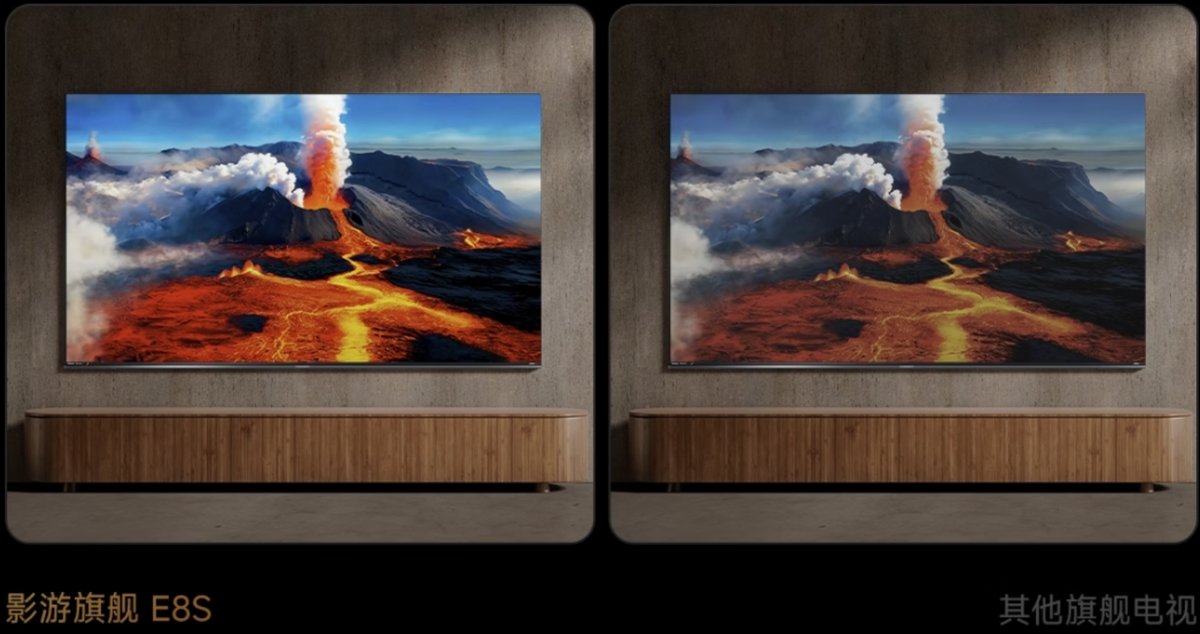 高达5300nits的超高亮度也让屏幕呈现HDR内容时足够优秀,高亮画面足够明亮却不过曝,暗处也不会糊成一团。而针对大屏串色、拖影更容易放大的问题,E8S通过超高分区控制(3×10240)能力和光色同控算法,让色彩边缘更清晰、过渡更丝滑,真正坐在家里享受影院级质感。