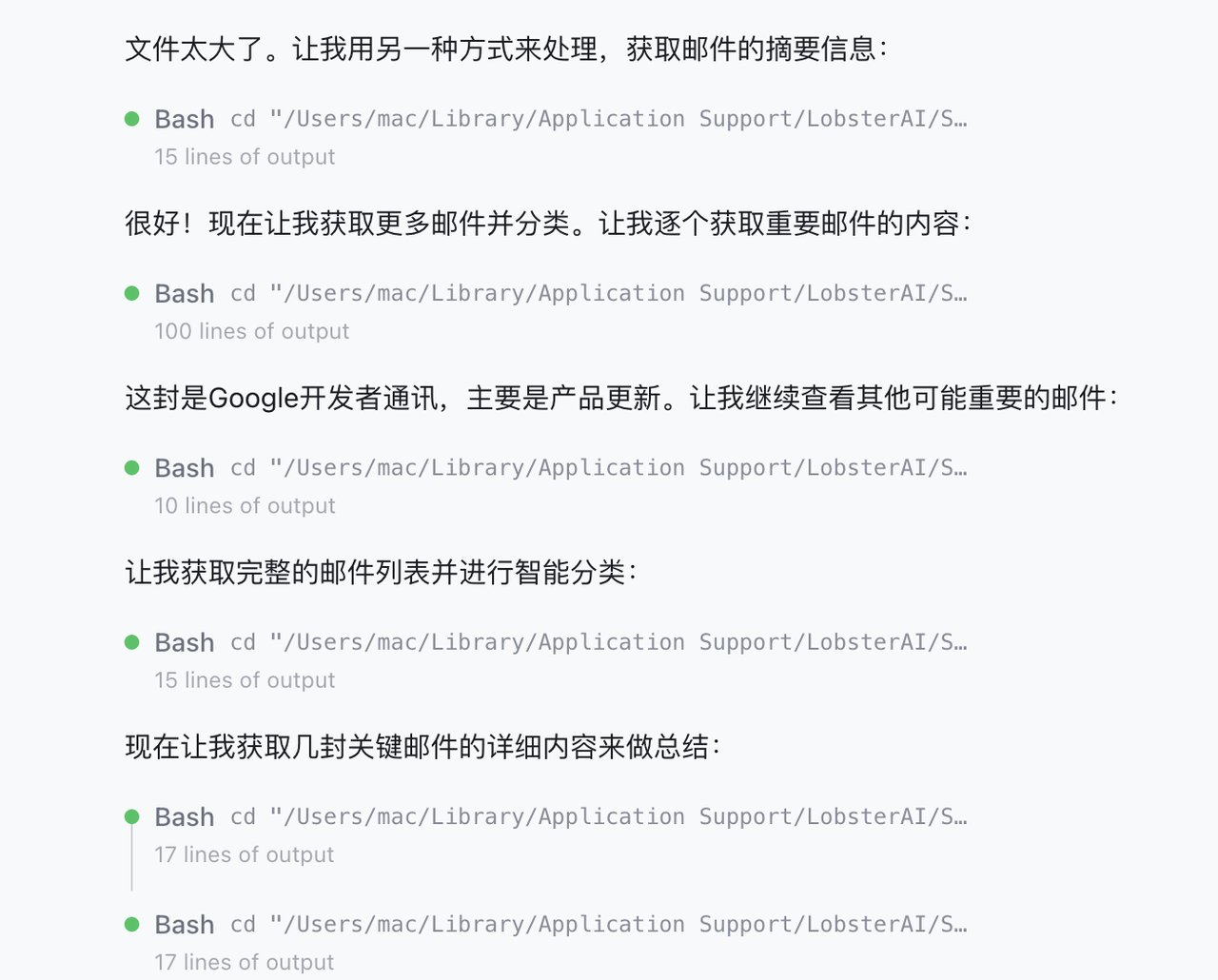 这个案例虽小,但意义重大。它证明了LobsterAI不仅具备了对本地环境的深层读写能力,而且具备了极强的任务规划和兜底意识。