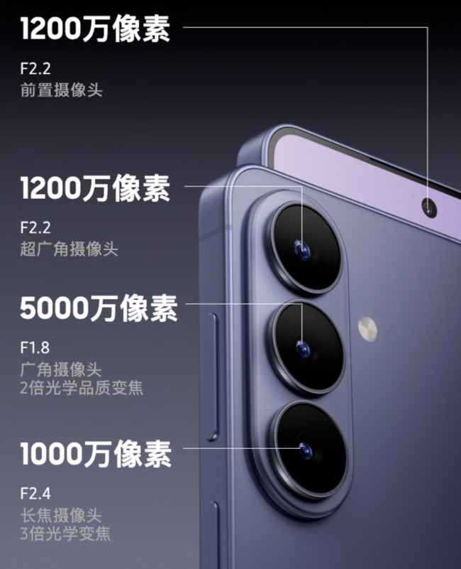 三星Galaxy S26和三星Galaxy S26+搭载1200万像素前置摄像头,后置1200万像素超广角摄像头、5000万像素广角摄像头、1000万像素长焦摄像头;夜间拍摄能力再进一步,画面暗部与高光细节清晰鲜活;搭载超视觉引擎,细腻、清晰、色彩饱满;超级稳定新增水平锁定功能,精准识别重力方向,即使旋转拍摄,也能让画面保持水平,拍摄画面更稳定;前置自拍摄像头搭载AI图像信号处理器,精准展现肤色质感及面部细节,自拍人像更细腻。