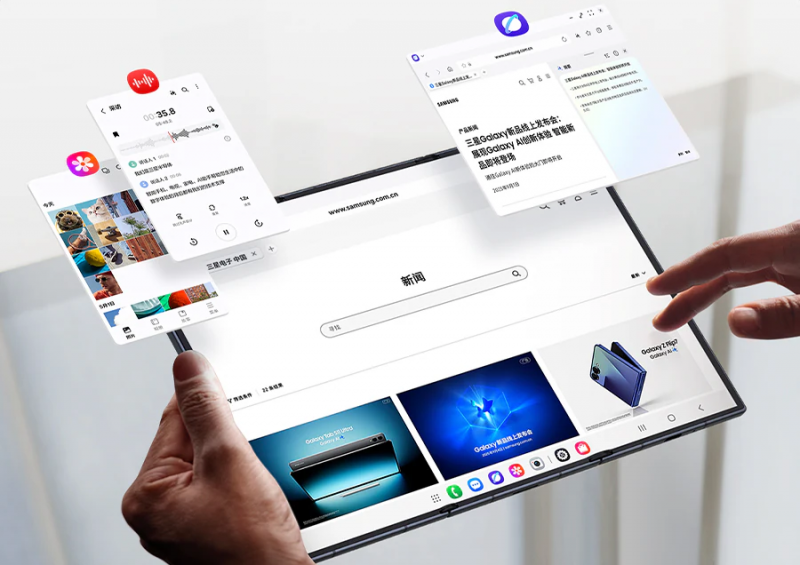 以10英寸巨幕带动视觉观感和生产力的提升,正是三星Galaxy Z TriFold的核心优势。无论是观影、游戏,还是办公,这块超大屏幕所提供的视觉效果令人震撼。特别是在办公场景下,三星对大屏的充分利用让处理事务变得轻而易举。就如同用户所说,你可以在大屏中同时开启三个竖屏应用,互不干扰地运行,以便能进行多线操控。同时,无需外接显示设备,开启DeX模式,三星Galaxy Z TriFold就会切换到与PC类似的交互界面。此时,用户可创建最多四个独立桌面、每个桌面可同时运行五个应用程序窗口,在窗口之间,还能自由拖拽文本、图片等,让文件快速灵活地在各个应用间流转,进而满足用户的复杂任务处理需求。可以看出,当屏幕物理边界被打破时,软件生态的优势便被成倍放大。
