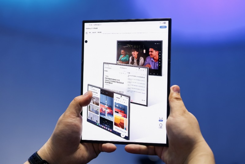 凭借行业领先的工艺能力,三星Galaxy Z TriFold通过铰链、内外部材质等方面的升级,不但构建了优异的耐用性解决方案,而且还保持了近一年来Galaxy手机追求的轻量化设计。独特的双内折保护柔性屏方案,让折叠形态下的主屏幕可安放于机身内部,极大程度避免刮擦、跌落等意外对主屏的破坏。两组不同尺寸的双轨结构铰链,能够以协同运作的方式确保三折叠开合顺滑,同时均匀分散外力,令折叠区域更加平整,折痕难以察觉。钛金属材质铰链盖、增强型装甲铝边框、玻璃陶瓷外屏盖板等材质,也为三星Galaxy Z TriFold提供了更可靠的防护。而无论是展开时的超薄机身,还是闭合后如直板手机一样的精巧,都是三星针对便携性所做出的努力。