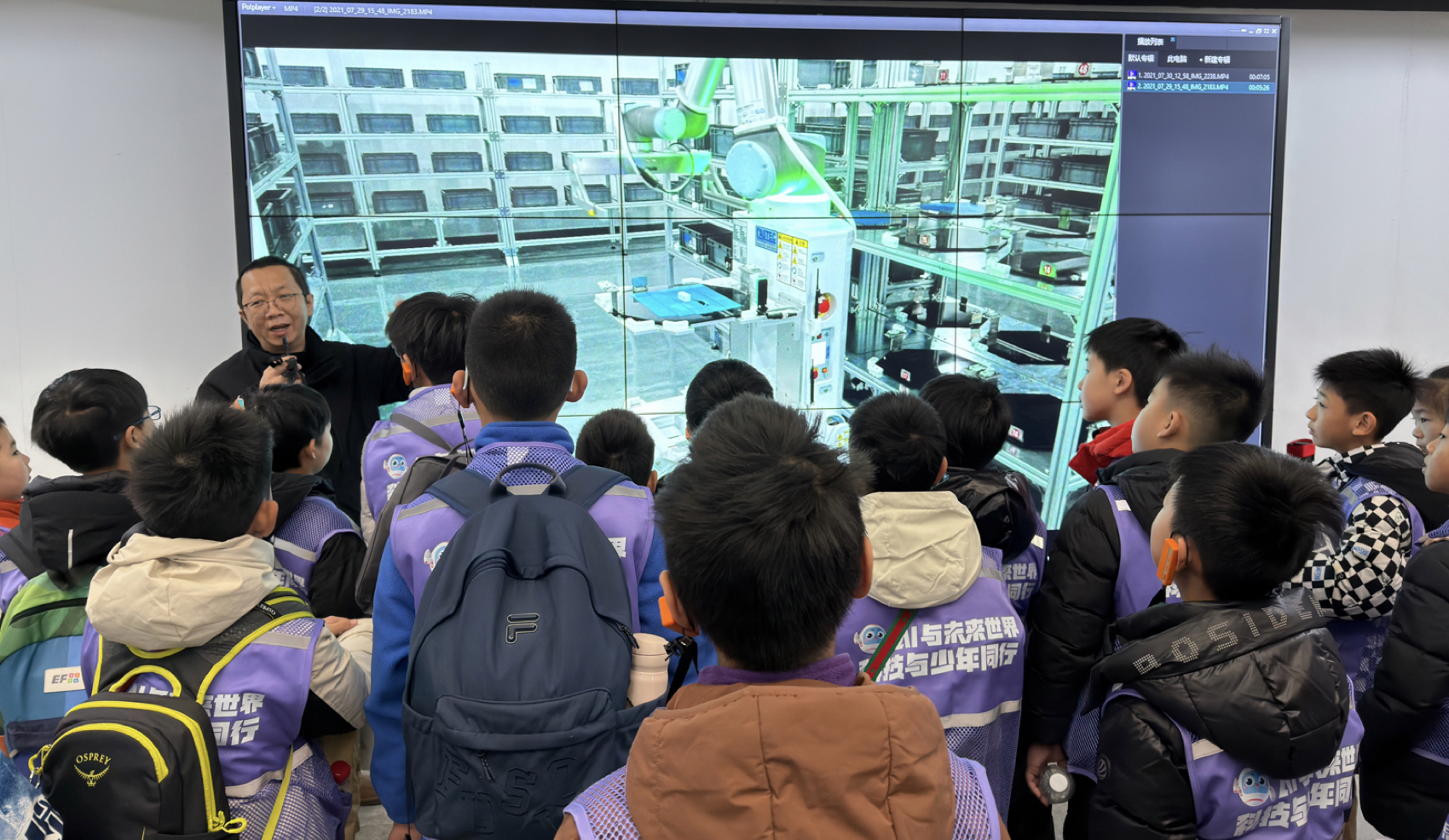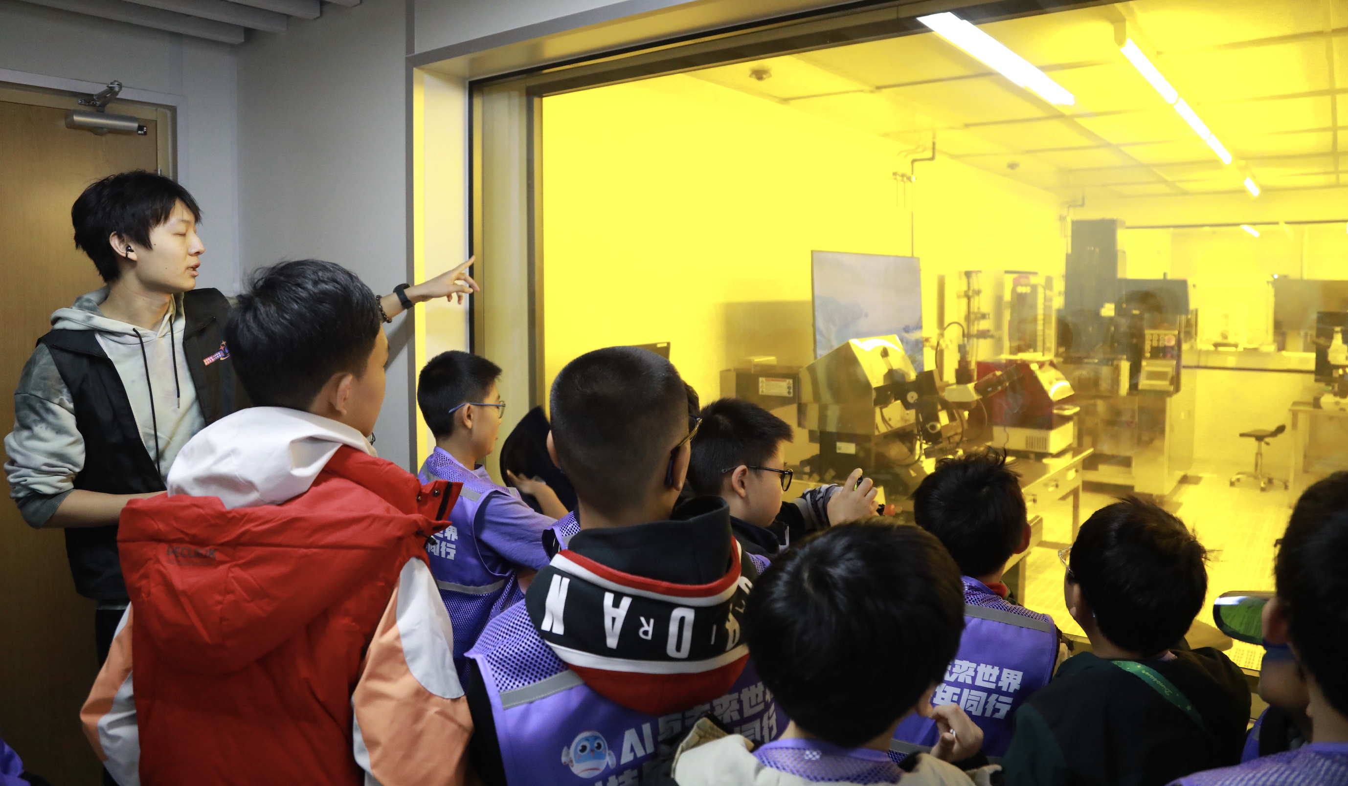 北京航空航天大学实验室——孩子听老师讲解光刻机设备
