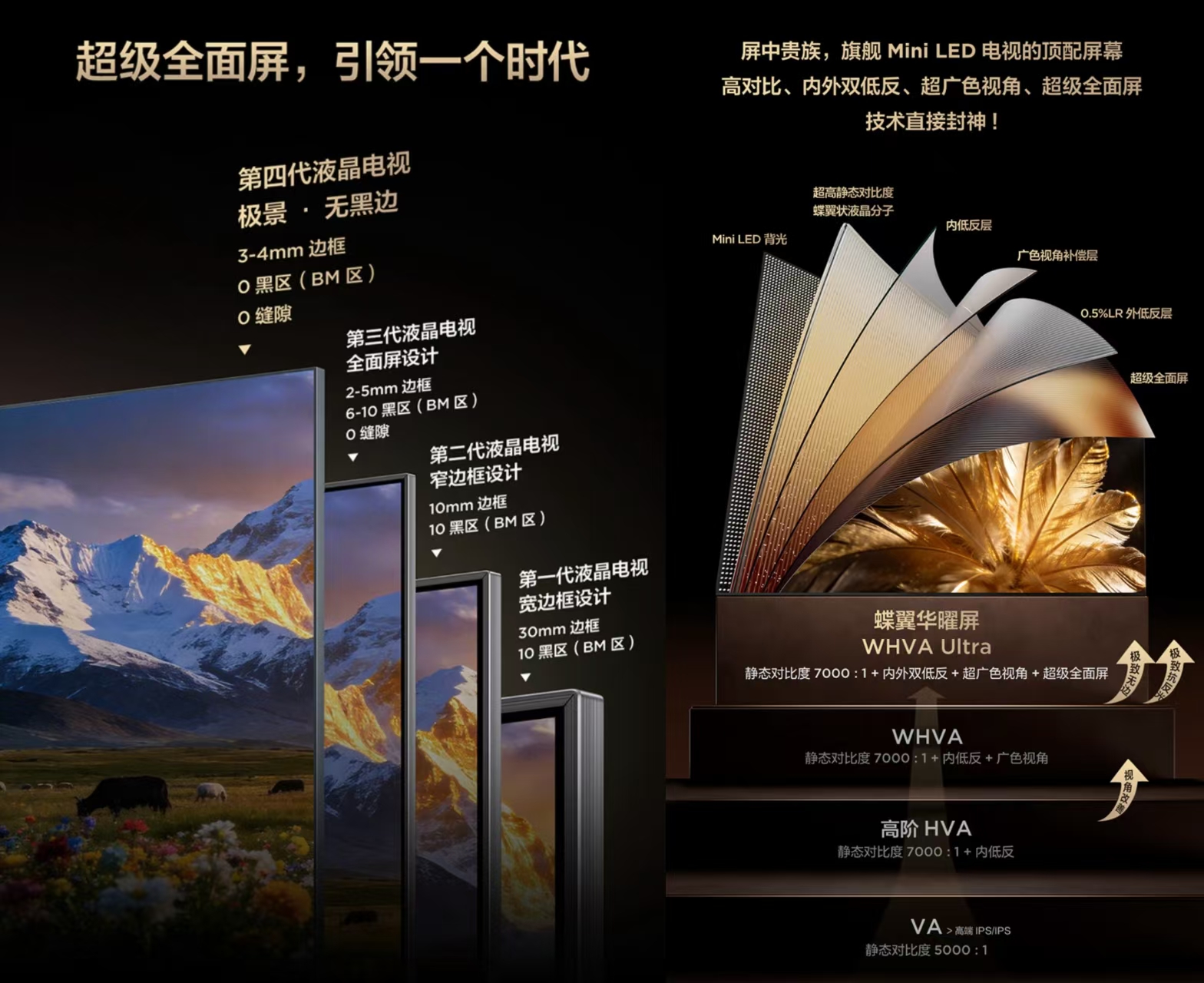 雷鸟鹤7 Pro 26款主打画质与体验的全方位提升,瞄准万元内最值得买的全方位旗舰电视。新品采用“极景·无黑边”设计,实现近100%屏占比,配合一体化超薄机身。屏幕方面搭载蝶翼华曜屏,静态对比度达7000:1,内外双低反仅1.8%。
