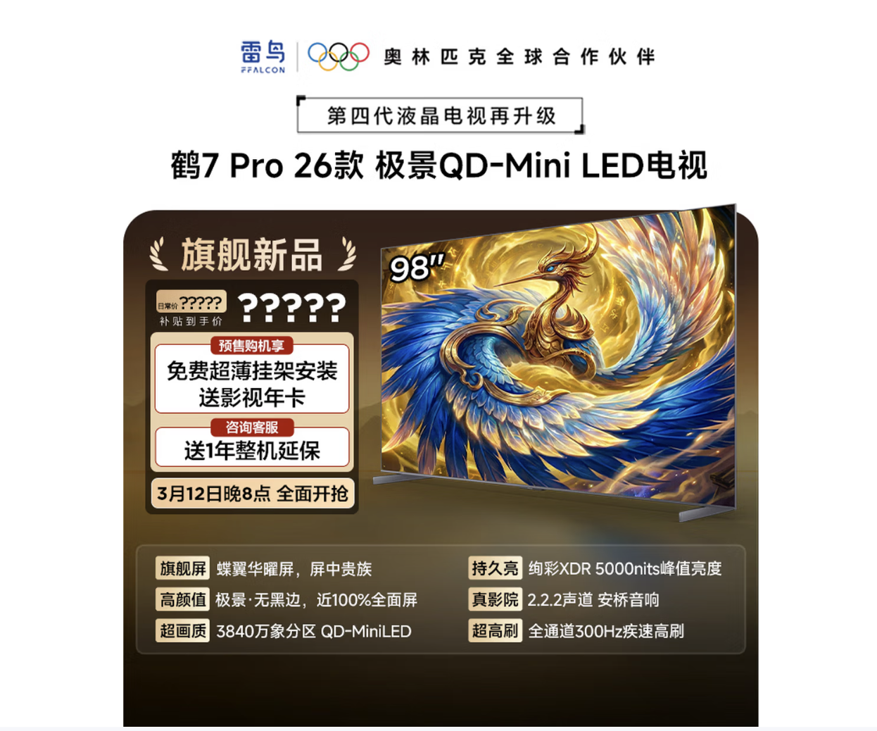 3月1日,雷鸟鹤7 Pro 26款(R79A Pro)正式在电商平台开启预约。作为雷鸟2026年开年旗舰,该产品定位“第四代液晶电视再升级”,在上市前面向全网发起了“开年第一测”英雄令。