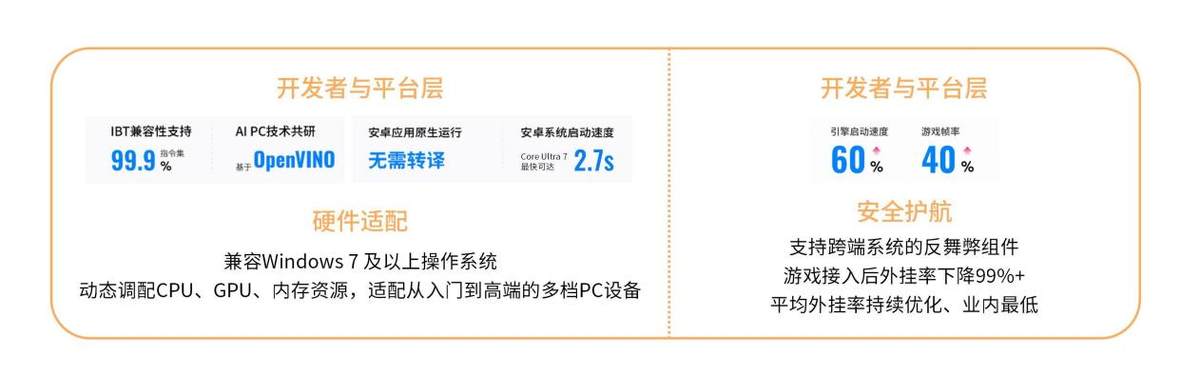 而真正的突破,来自于对底层的重构。腾讯应用宝与英特尔等行业伙伴共同推进的跨端引擎,其核心在于通过英特尔® Bridge技术,在应用运行时实现指令集的动态、高效编译转换,从而在底层打通了ARM与x86架构的鸿沟。这使得绝大多数移动应用无需修改代码,即可在Intel平台的PC上原生级运行,从根源上解决了“能不能”的问题。