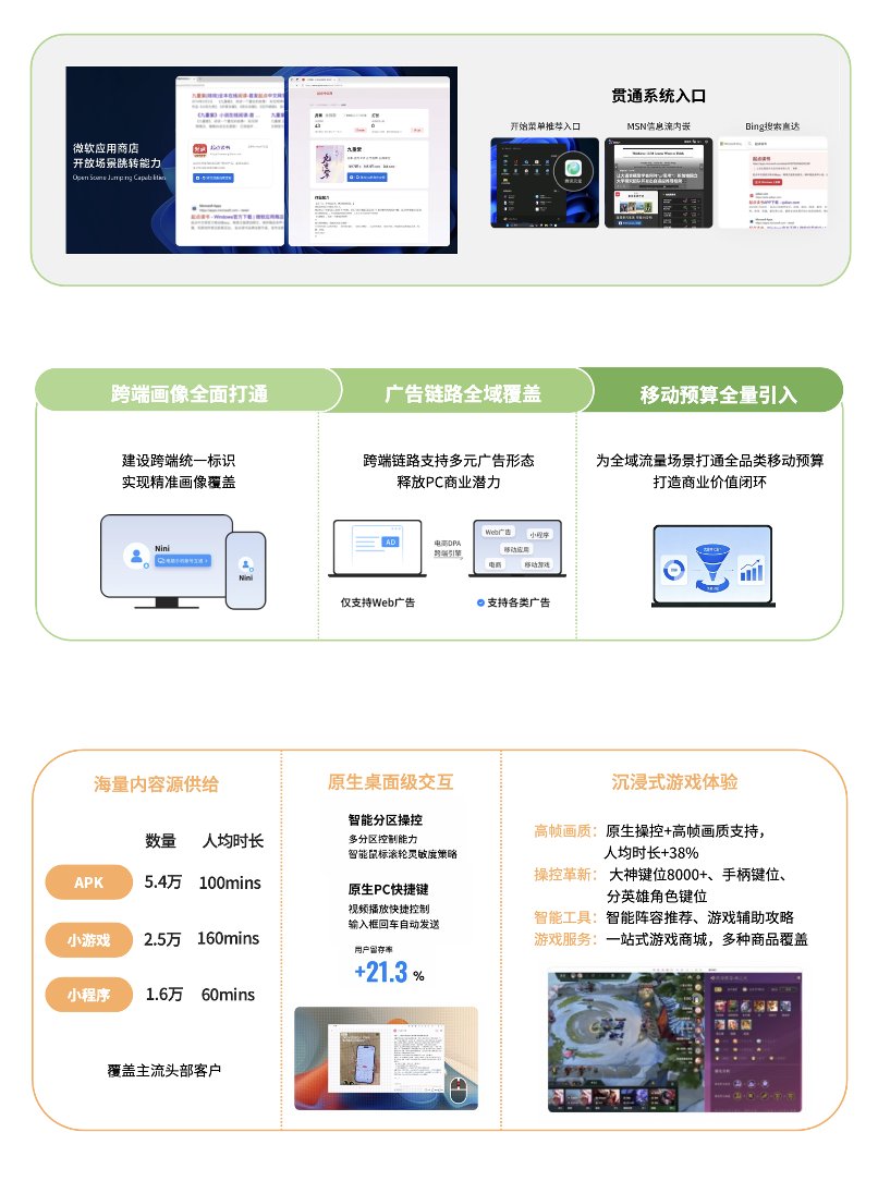 2025年3月,微软应用商店腾讯应用宝专区全量上线,实现中国区Windows 10/11系统的全面覆盖。这不仅是微软在国内首次向第三方开放系统级入口和资源组建,更意味着用户可以直接在PC上无缝运行安卓应用,无需模拟器,无需复杂设置,真正实现"一次开发,多端覆盖"。数据显示,该专区已覆盖1.4亿台设备,接入4万+移动应用,引擎安装成功率高达97%。与此同时,移动跨端引擎在 Windows 生态的深度落地,为微软中国开拓了全新的商业增长曲线。