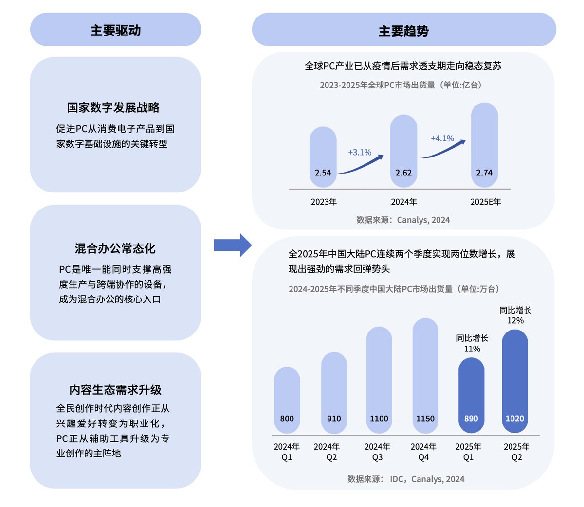 看似沉寂多年的PC市场,正在迎来一场结构性复苏。根据腾讯应用宝联合微软、英特尔、联想、腾讯科技、咨询公司凯度发布的《跨端洞见,增长新篇 | 2026跨端生态行业白皮书》显示,全球PC产业已从疫情后的需求透支期走向稳态复苏,2023年至2025年全球PC市场出货量预计从2.54亿台增长至2.74亿台,年均增速超过4%。更值得注意的是,中国大陆市场在2025年连续两个季度实现两位数增长,第一季度同比增长11%,第二季度同比增长12%,展现出强劲的需求回弹势头。