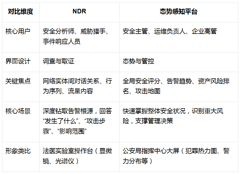 简单来说:NDR是你的一线分析师,态势感知平台是给客户看的管理者驾驶舱。