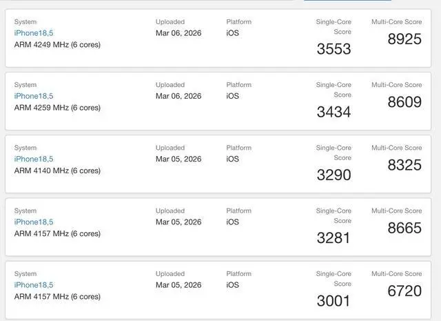 3 月 7 日消息,苹果 iPhone 17e 手机的跑分现已出现在 Geekbench 数据库中,让外界得以更清楚地了解阉割版 A19 芯片的真实表现。