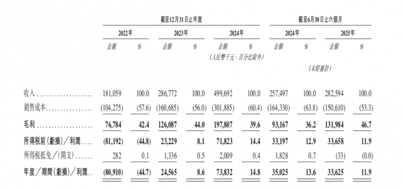 近年来总收⼊一直保持稳健的快速增长。从2022年的1.811亿元,增长至2023年的2.868亿元、2024年营收4.997亿元,2025年上半年营收2.826亿元,较2024年同期的2.575亿元增长9.7%。整体来看,2022年至2024年,总收⼊的年复合增长率高达66.1%。