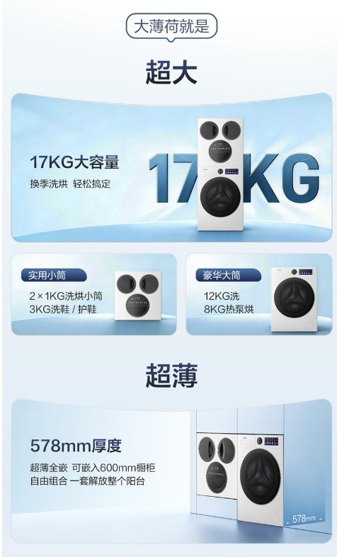 推荐理由:17kg超大家庭容量+578mm超薄机身,质价比拉满