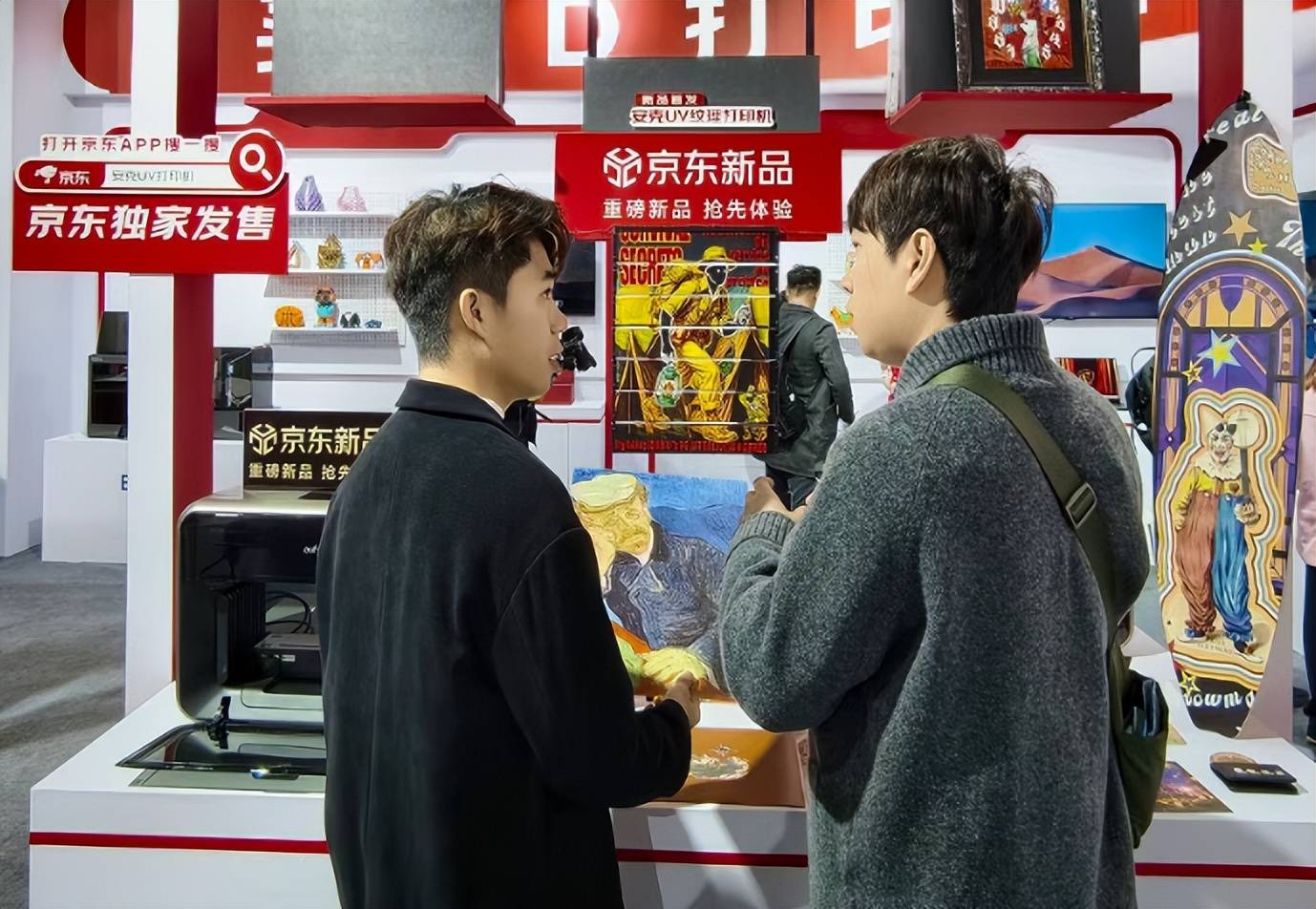 展区的一大核心亮点,当属京东为观众提供的 3D 打印和 UV 纹理打印沉浸式体验服务。在安克 eufyMake 展台前,观众只需用手机拍下一张照片,短短几分钟后,一张带有浮雕质感的立体画像便从 E1 中缓缓输出,引得不少人连连惊叹:「原来照片不仅能看,还能摸!」