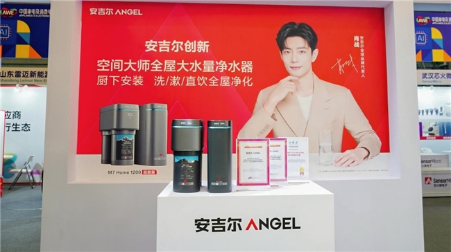 本届AWE期间,安吉尔设置了新品展陈、体验互动、线上直播、供应溯源四大功能分区,全方位展现其在净水领域的科技实力与全场景净饮水产品布局。