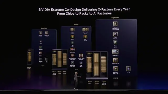 3 月 17 日消息,英伟达在 GTC 2026 上公布了其 Rubin 与 Feynman 两个世代(IT之家注:即 2026~2028 年)的新版本路线图,首次确认了与 Feynman GPU 配套的 CPU 代号为 Rosa。