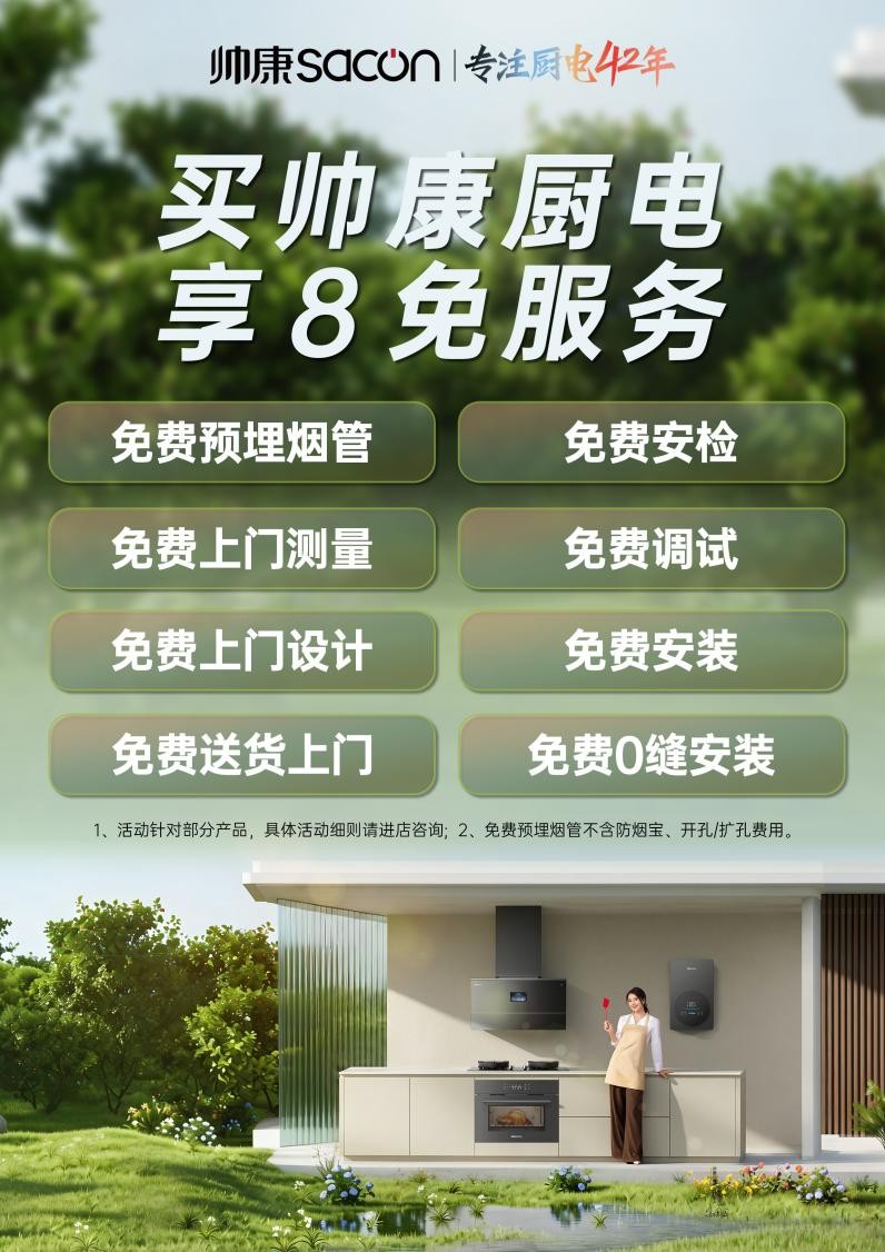 告别油烟困扰,升级0烟感厨房,就从帅康开始,帅康以硬核实力通过“国补+厂补”双重补贴叠加,消费者不仅能享受帅康以旧换新专项补贴,还可获得专属免费安装与清洗安检服务,让家居升级轻松实现。