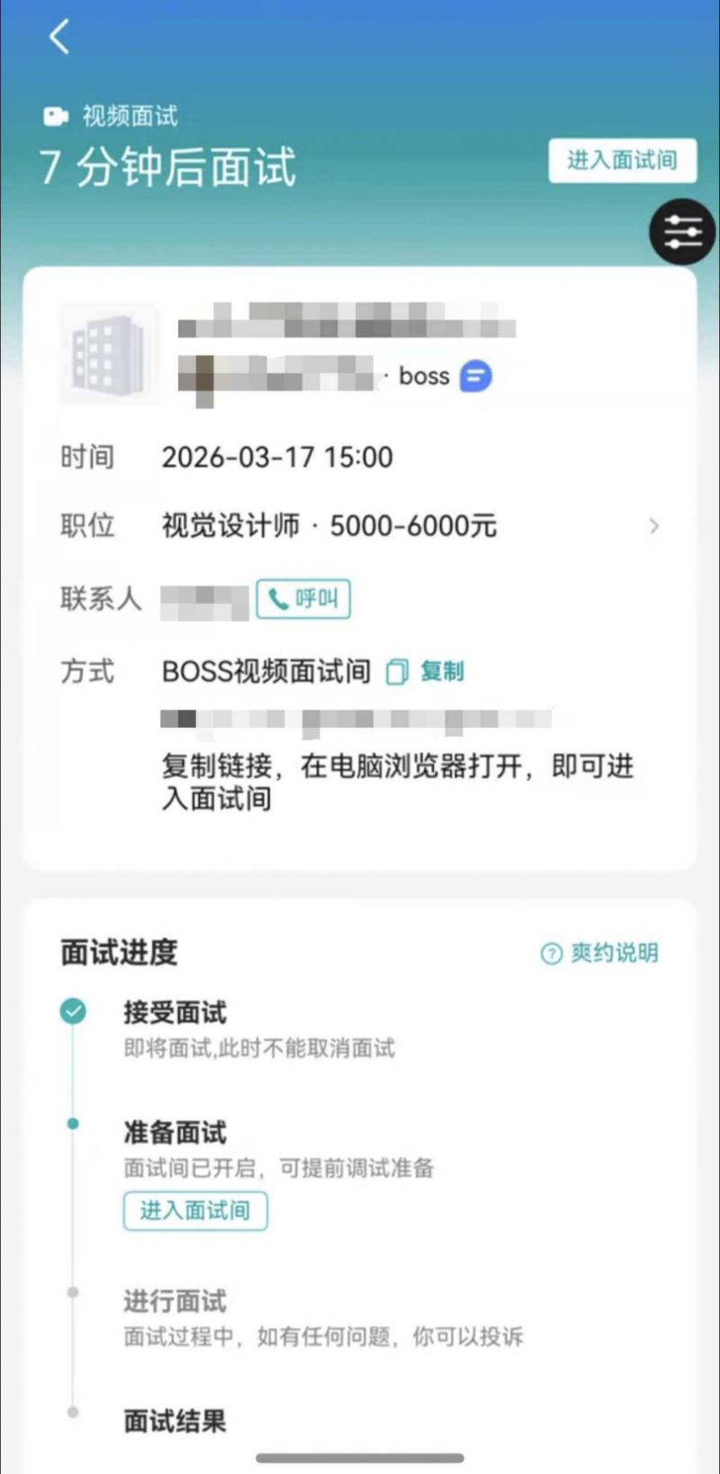 以前HR约面试,得先加微信、再发会议链接、再提醒上线……现在鸿蒙版BOSS直聘直接内置视频面试,聊天界面一键发起、一键接听,省掉中间所有折腾。