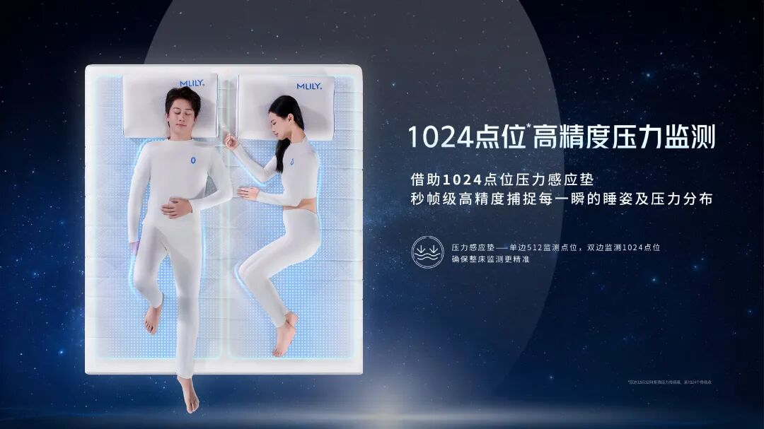 发布会现场披露了AI-Smart3.0的众多产品亮点,产品配备1024点位高精度压力感应垫,构成了一张覆盖全身的“压力感知网”,秒帧级捕捉人体每一瞬的压力分布、睡姿状态、身体曲线等海量数据;通过AI智能加持,让睡姿数据动态更新,接入人体睡姿大数据库,快速分析并匹配专属的支撑调节方案;最终根据调节方案,指令床体内的调节系统执行,床体及适配的梦百合0压床垫在高静音电机的调节下,精准升降,主动补偿不同睡姿下支撑薄弱点,实现“感知-分析-决策-执行”的闭环。