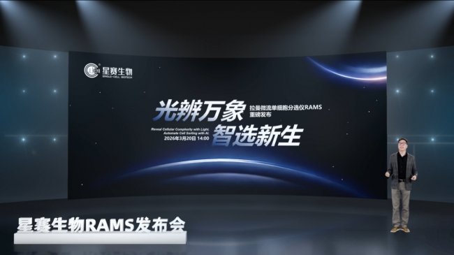 2026年3月20日春分,象征生命勃发之际,星赛生物以“光辨万象·智选新生”为主题,举行2026年度新品线上发布会,数百位行业人士共同见证拉曼微流单细胞分选仪RAMS全球首发,开启单细胞研究智能新时代。此次发布会主要由星赛生物董事长马波(中国科学院青岛生物能源与过程研究所研究员)进行介绍。