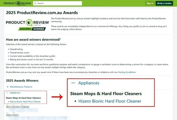 HIZERO赫兹在澳大利亚已连续五年获得Product Review年度清洁产品奖,其成功来自两个因素。