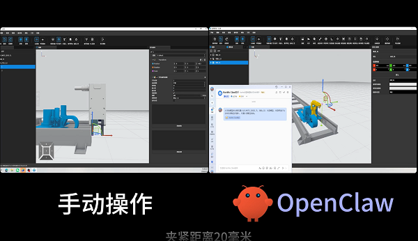 现在,你只需对龙虾说:“为这个双臂夹具模型配置夹紧动作,夹紧距离20毫米。”
