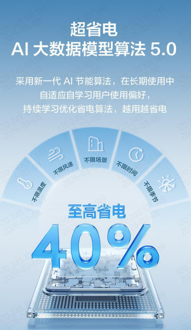 在节能环保方面,TCL小蓝翼·全域风Pro AI健康舒适空调搭载超省电AI大数据模型算法5.0,采用新一代 AI节能算法,在长期使用中自适应自学习用户使用偏好,持续学习优化省电算法,越用越省电,至高省电40%。