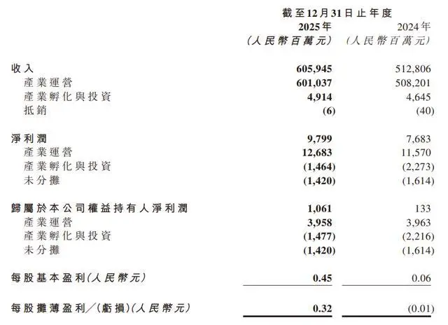 3 月 31 日消息,联想控股今日发布截至 2025 年 12 月 31 日止年度全年业绩公告: