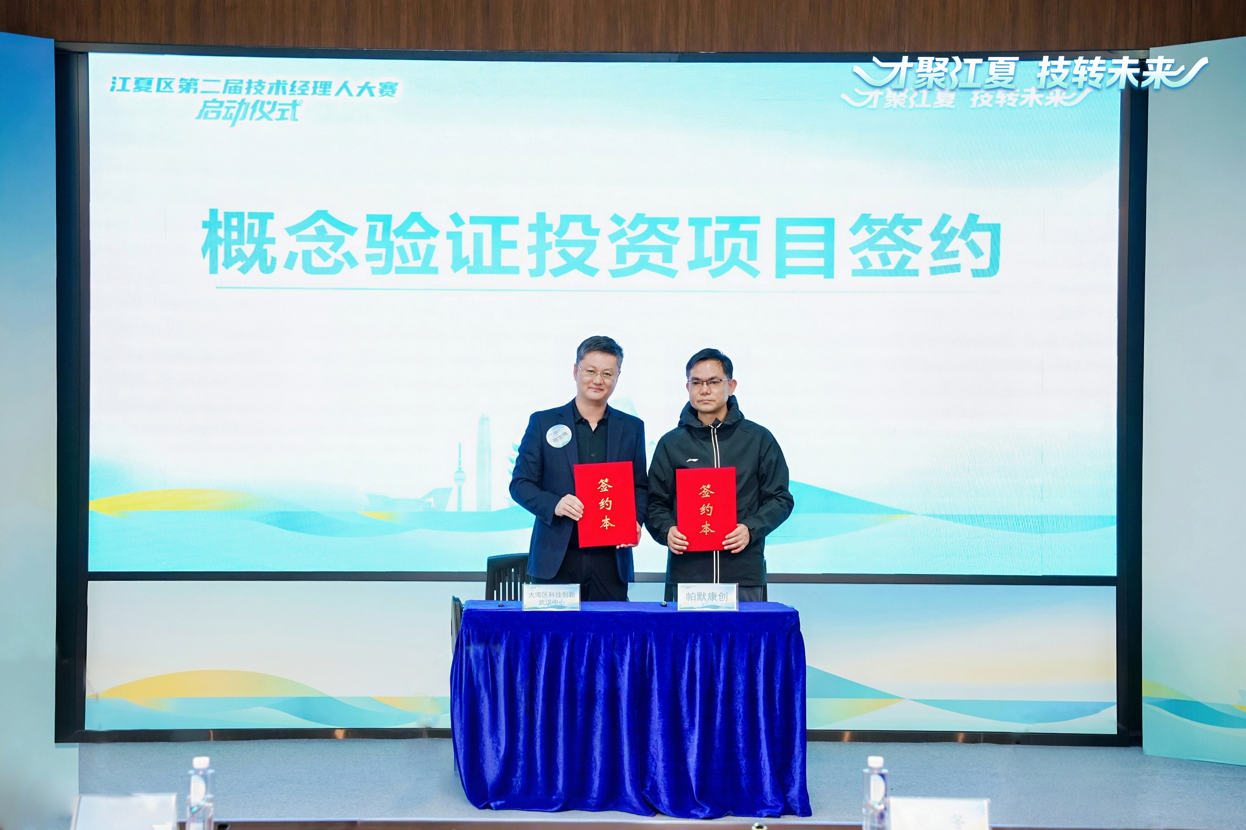 启动仪式上,武汉帕默康创公司创始人李效宽与汤逊湖科技创新中心(武汉)有限公司总经理邢宝伟现场签署概念验证投资合作协议,依托武汉市概念验证中心(汤逊湖科技创新中心),开展早期成果投资与市场化验证。