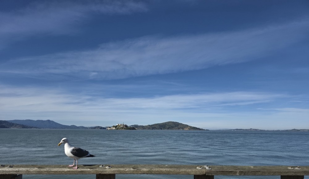 39号码头作为旧金山最具标志性的地标之一,拥有绝佳的开阔海滨视野。在三星Galaxy S26 Ultra的镜头下,即便是隔海相望的恶魔岛(Alcatraz Island)——通常需要乘船抵近才能一探究竟——也能在画面中呈现出清晰、锐利的丰富细节。