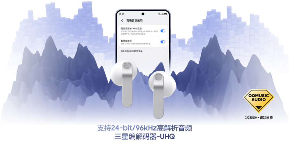 三星Galaxy Buds4与三星Galaxy Buds4 Pro凭借卓越音质表现,成功通过QQ音乐臻品音质认证。在使用QQ音乐时,三星Galaxy Buds4 与三星Galaxy Buds4 Pro可以播放 QQ音乐臻品曲库中的无损音源,高达24-bit/96kHz采样率解析的音源传输,为音乐爱好者带来更佳的聆听体验。三星还将与QQ音乐展开深度合作,共同打造从硬件解码到音源传输的全链路定制化的产品解决方案。运动时,只需在三星Galaxy 智能手机上开启「超高音质(UHQ)音频」选项,即可体验到超高音质的Hi-Fi音频,尽享悦耳动听的原音之美。