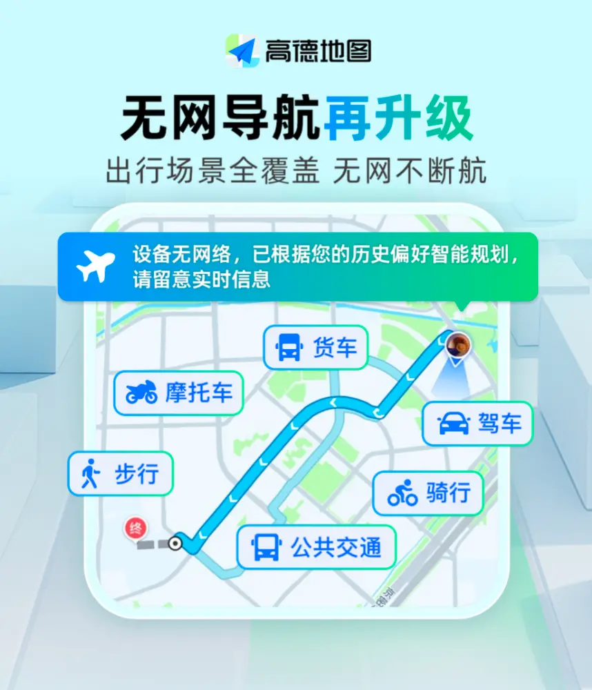 4月3日,高德地图近日对无网导航能力进行升级,覆盖驾车、公交地铁、货车、摩托车、骑行、步行等全出行场景。系统无需用户操作,自动缓存用户近期导航过的路线,在突发无网状态下自动切换至无网导航,持续提供语音引导与路线指引。