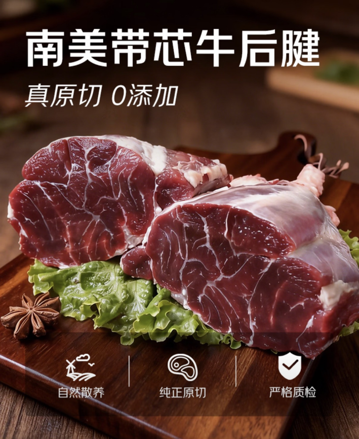 在露营地和民宿院子里,烤肉是绝对的社交硬通货。“鲜京采甄选南美进口原切带芯牛后腱4斤装”成交额同比增长210% ,原切工艺保证了肉质在户外烹饪时的鲜嫩口感,满足了消费者对“配料干净”的健康诉求。而“牛鲜尊国产黄牛牛肉卷2斤装”同比增长310%,这款原本多见于家庭火锅场景的产品,如今也被大量户外爱好者带上了山野。无论是户外火锅还是一锅炖煮,这种“热腾腾”的体验正是清明微凉夜晚的最佳搭配。