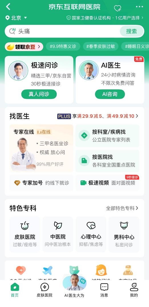 出行期间如遇健康问题不便线下就医,用户可在京东APP搜索“问医生”,进入京东互联网医院获得24小时在线问诊服务,平均30秒接诊。平台汇聚了近2000名三甲医院耳鼻喉科医生及超3000名皮肤科医生,覆盖各类过敏性疾病。此外,京东健康自研的AI医生“大为”也可7×24小时提供健康咨询,让公众安心享受清明踏青时光。