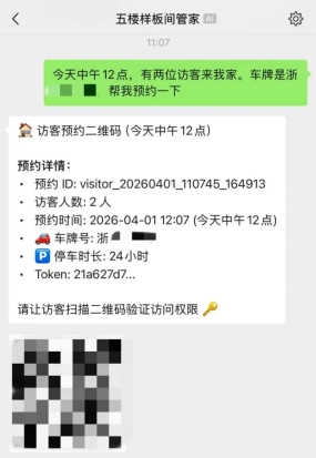 从家庭到社区,博联将QClaw的触角延伸至更广阔的生活场景。用户通过微信即可完成小区会所空间的预约。遇上家庭设备故障,一键拍照上传实现AI自动预检,同时联动物业系统自动生成报修工单;访客预约无感通行、调看监控等都可以轻松实现。