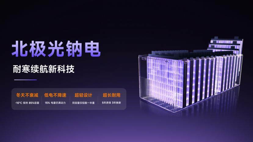 此外,北极光钠电体积小更轻巧,便于安装携带,骑行体验更加轻盈自如;稳定的放电技术,即使电量低于15%,动力输出仍无衰减,爬坡无压力、加速不疲软,消除用户的“电量焦虑”。