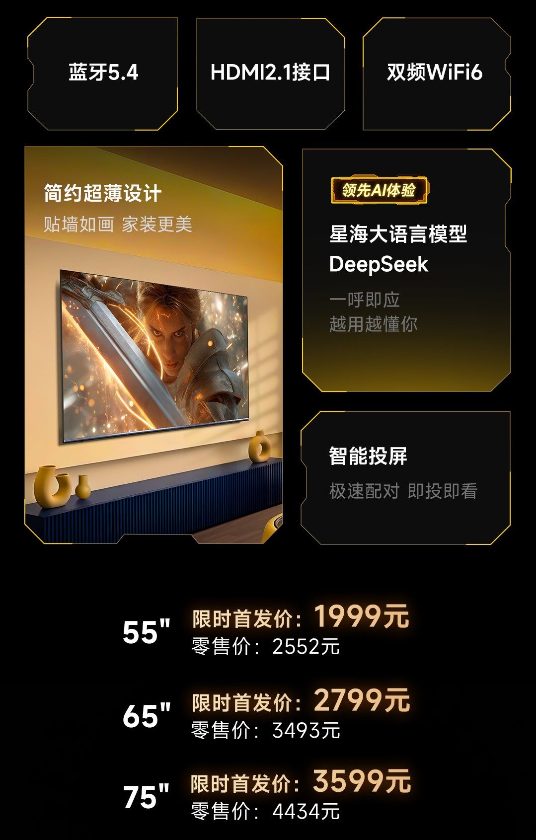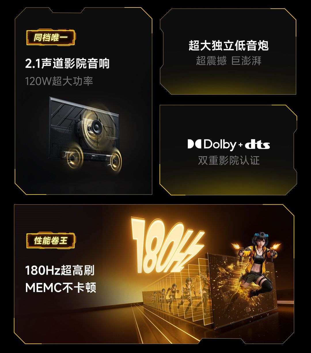 此外,这款“小钢炮”新品还拥有180Hz电竞级超高刷,搭配MEMC智能运动补偿,看极速赛事、玩3A大作丝滑无拖影,提前适配未来多代游戏主机,一次选购多年不落伍;配备HDMI2.1、双频Wi-Fi 6、星海大模型智能语音,全场景需求一站式拉满;RGB智能光感+20000Hz高频护眼调光的组合,更是让熬夜追剧的年轻人,再也不用怕眼睛酸胀疲劳。
